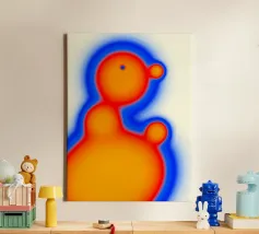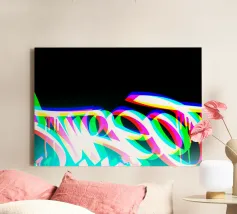 Questo intenso poster fonde estetica glitch, tipografia infuocata e una palette di colori vibranti. I numeri, distorti e aureolati in rosso, arancione, blu elettrico e nero profondo, sembrano fluttuare in uno spazio astratto e saturo di calore visivo.