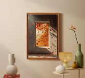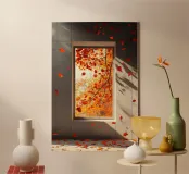 Un momento sospeso nel tempo: una finestra incorniciata nella pietra, foglie autunnali che scivolano dolcemente all'interno e la luce del sole che traccia ombre delicate sulla parete. "Autumn Window" è allo stesso tempo minimalista e coinvolgente, in grado di bilanciare il calore dei colori stagionali con il ritmo tranquillo delle foglie che cadono.