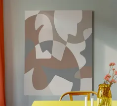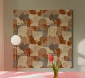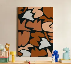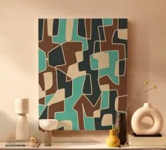 Un sofisticato motivo astratto che combina motivi di foglie botaniche con forme geometriche art déco nei caldi toni della terra: arancio ruggine, terra di Siena bruciata, grigio e crema. Questo disegno artistico fonde elementi floreali organici con forme geometriche moderne per un'estetica raffinata e vintage-moderna. Perfetto per gli amanti dell'art déco, per gli appassionati di arte astratta, per i fan delle tonalità della terra e per chiunque apprezzi l'elegante fusione di design botanico e geometrico con colori caldi e naturali.