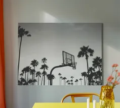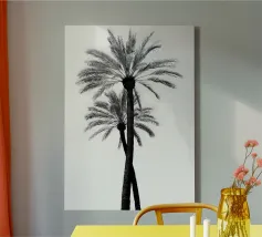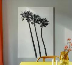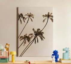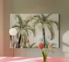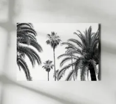 Lasciatevi trasportare dall'eleganza e dalla maestosità di queste palme imponenti. Mentre le loro cime formano un disegno circolare contro un cielo morbido e pastello, sentite la pace e la calma che offre la natura. Questa angolazione insolita non solo mette in risalto l'altezza degli alberi, ma anche la loro bellezza senza tempo.