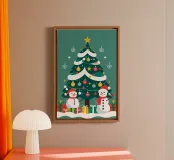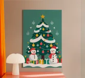 Albero di Natale con pupazzi di neve e regali tela