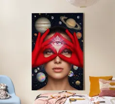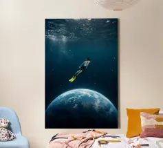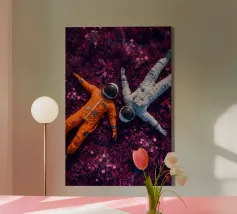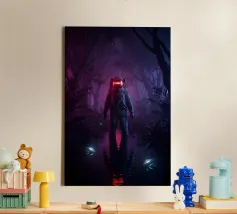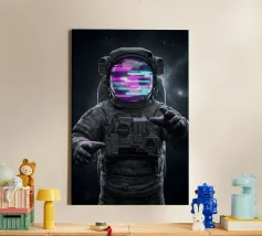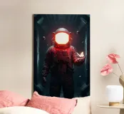 Astronauta di luce con in mano una farfalla in un futuro oscuro tela