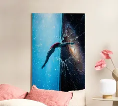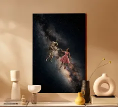 Astronauta di luce con in mano una farfalla in un futuro oscuro tela
