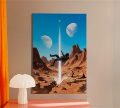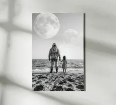Entrate in un momento di forte contrasto ed emozione. Astronauta di luce che tiene in mano una farfalla in un futuro oscuro presenta un esploratore spaziale solitario in un corridoio ombroso, il cui casco luminoso irradia calore mentre una delicata farfalla riposa delicatamente nella sua mano. L'immagine fonde la fantascienza futuristica con il simbolismo poetico, rappresentando la speranza, la fragilità e l'umanità in un freddo mondo tecnologico. L'illuminazione drammatica, le ombre profonde e la composizione minimalista creano un'atmosfera cinematografica e surreale.