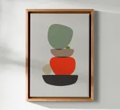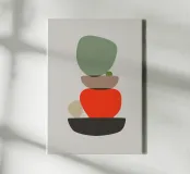 Balancing Shapes No. 3" combina forme armoniose per creare una composizione calma tra leggerezza e stabilità. Morbide tonalità di verde, marrone caldo e rosso brillante formano un equilibrio naturale, quasi come pietre impilate che riposano al loro interno. Un'opera d'arte calma e meditativa per chi ama il minimalismo con calore ed espressione. Perfetto per: Camere da letto, soggiorni, spazi creativi o come parte della serie "Balancing Shapes".