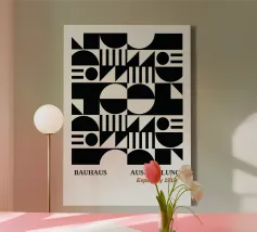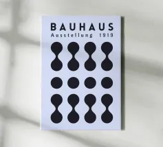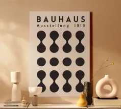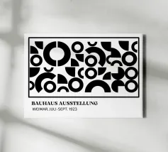Questo poster d'arte astratta, che si rifà all'epoca del Bauhaus (1919-1933), presenta un avvincente disegno geometrico. Quattro grandi forme sono composte da triangoli intricati e allineati, utilizzando motivi verticali e orizzontali in nero su uno sfondo chiaro. Il gioco di linee crea una struttura visiva e una forma che incarna i principi grafici del Bauhaus. Prodotto come arte digitale di alta qualità a 7000x5000 pixel e 300 dpi, questo poster garantisce dettagli nitidi e linee nette per un'opera d'arte di qualità.