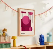 Uno straordinario poster astratto Bauhaus definito da una composizione di pura geometria in una sofisticata palette di rosa e marrone intenso. Il disegno è caratterizzato da grandi cerchi e rettangoli che si intersecano con linee nere decise e un sottile sfondo bianco sporco. Elementi come le barre nere verticali su un semicerchio e le linee orizzontali su un blocco marrone aggiungono una qualità dinamica e strutturata che riflette lo spirito costruttivista. Questo poster digitale viene fornito con una risoluzione superiore di 7000x5000 pixel a 300 dpi, garantendo una stampa eccezionale per i vostri interni contemporanei e chic.