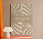 Un poster astratto sofisticato, dai toni neutri, ispirato al movimento Bauhaus e all'illusione dinamica della Op Art. Il disegno presenta quattro quadranti di linee curve e radianti color crema su uno sfondo solido e caldo beige/taupe, creando un'ipnotica illusione ottica di profondità e movimento. Questo pezzo offre una visione minimalista ed elegante dell'astrazione geometrica. Il testo "BAUHAUS" e "JULI - SEPT 1923" sono centrati. Fornita come file digitale di alta qualità (7000×5000 pixel, 300 dpi), questa opera d'arte garantisce una stampa nitida e ad alta definizione, perfetta per un interno contemporaneo dai toni neutri.