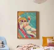 Bikini Cat Pool Float Divertente Pop Art estiva retrò tela