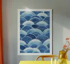 An elegant abstract pattern of blue waves unfolds in this illustration. The flowing curves and subtle gradations of blue create a soothing, rhythmic effect, bringing a touch of harmony and freshness to your space. This timeless design evokes the tranquillity of the sea, ideal for any room where you want to create a calm and serene atmosphere.