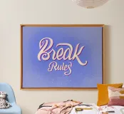 Scrittura Break Rules in eleganti tonalità di blu con un effetto ricco e strutturato.