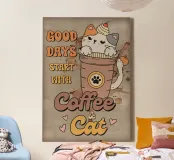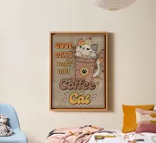 Caffè e gatti tela con Cornice a cassetta