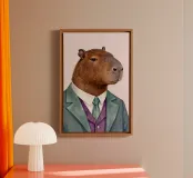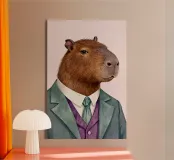 Un raffinato capibara vestito con un abito classico, che unisce fascino ed eleganza a un delicato tocco di umorismo - perfetto per le pareti della cameretta o per spazi giocosi.