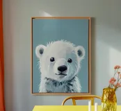 Carino cucciolo di orso polare con espressione giocosa e pelliccia soffice tela con Cornice a cassetta