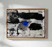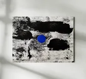 Un intenso punto di calma nel caos. Il cerchio blu attira lo sguardo come un occhio interiore di quiete, mentre le tonalità grezze del nero e del grigio creano movimento e struttura. Quest'opera simboleggia il momento in cui tutto il rumore tace, simbolo di concentrazione, meditazione ed equilibrio interiore.