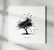 Questa elegante opera d'arte cattura l'essenza dell'autunno con un albero grazioso e foglie cadenti, disegnate in uno stile minimalista di pennellate in bianco e nero. È possibile personalizzare il testo per renderlo proprio, ma l'opera d'arte rimane fissa per preservare il suo carattere unico.