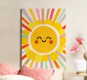 Luminoso, allegro e pieno di energia: questo sole sorridente porta immediatamente il buon umore in qualsiasi stanza. Con i suoi raggi colorati e il suo volto amichevole, è il motivo perfetto per le stanze dei bambini, le sale giochi o per chiunque voglia godersi un po' di sole ogni giorno. Un design che irradia ottimismo, gioia e calore, ideale per i piccoli solari e i grandi sognatori.