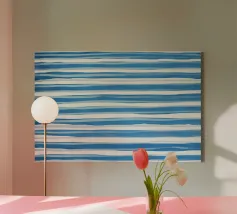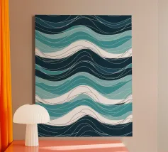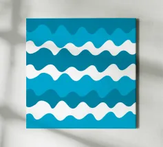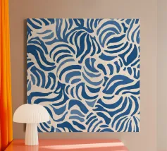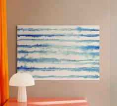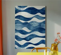 Onde dipinte a mano con pennellate nei toni del cobalto e del blu pallido. Dinamico con un senso di movimento.