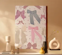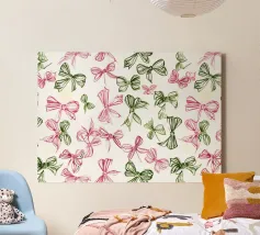 Un motivo giocoso di fiocchi colorati in rosso, rosa, verde acqua, verde lime e pesca, sparsi su un morbido sfondo color pesca con accenti di stelle bianche. Questo disegno allegro e festoso dona un fascino stravagante, perfetto per aggiungere un tocco femminile e gioioso al vostro spazio. Ideale per confezioni regalo, decorazioni ispirate alla moda o per chiunque ami un motivo audace ma delicato. Creato da showmemars