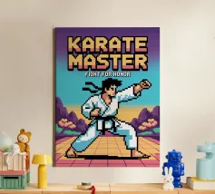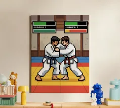 Entrate nella gabbia con questo esplosivo disegno MMA in pixel art! Due lottatori si affrontano in un intenso duello che cattura tutta la tensione e l'energia delle arti marziali miste, in stile videogioco retrò. Perfetto per gli appassionati di MMA, arti marziali e cultura videoludica. Lo stile arcade vintage conferisce un'atmosfera nostalgica, evocando al contempo la potenza, la strategia e l'adrenalina di un vero combattimento nella gabbia delle arti marziali miste. È un'immagine potente per i veri fan dei combattimenti in pixel.