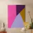 Una composizione astratta con audaci forme geometriche in rosa, viola, oro e azzurro. Il gioco di colori crea un'esperienza visiva dinamica.