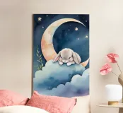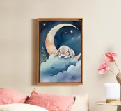 Coniglio che dorme su una nuvola con luna crescente e stelle tela
