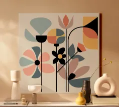 Where the untamed beauty of nature meets the clarity of modernist design. By distilling organic forms to their purest lines and elemental colors, it invites us to find harmony in simplicity and discover the timeless artistry that exists where the wild spirit of a flower meets the deliberate precision of human creation. It challenges us to see beyond the superficial and appreciate the deep, quiet power of form, function, and intrinsic beauty.