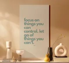 Semplice citazione ispiratrice testo blu su sfondo beige