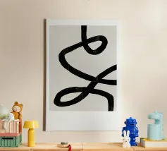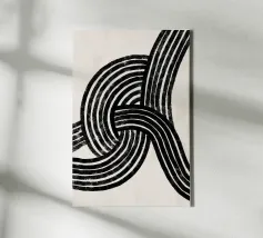 Quest'opera d'arte astratta affascina con una serie di linee curve e fluide che si combinano per formare un motivo armonioso. Le linee nere di varia intensità su sfondo bianco conferiscono al quadro un aspetto moderno e ipnotico. Un pezzo forte ideale per gli interni moderni che enfatizzano l'eleganza semplice e l'arte contemporanea.