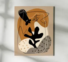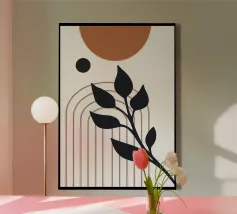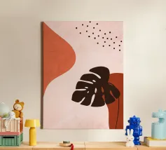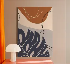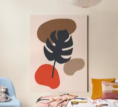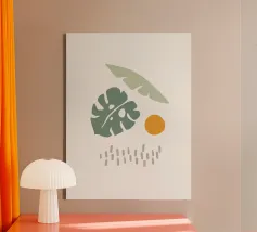 Un design artistico con foglie di monstera minimaliste in contrasto bianco e nero, abbinate a un caldo semicerchio in terracotta. L'armoniosa fusione di forme naturali e linee moderne fa di questo motivo il pezzo forte di ogni casa. La palette di colori ridotta e gli elementi grafici creano un look contemporaneo ed elegante. Perfetto per opere d'arte da parete, cuscini, tazze o cover per cellulari. Questo disegno conferisce un tocco boho chic e botanico al vostro spazio abitativo o lavorativo ed è ideale anche come regalo per gli amanti della natura e del design.