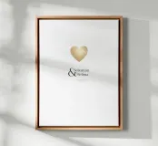 Celebrate l'amore con questo disegno personalizzabile che raffigura un bellissimo cuore d'oro e i nomi e la data da voi scelti. Perfetto per matrimoni, anniversari o fidanzamenti, questo elegante disegno può essere applicato a una varietà di prodotti. Un ricordo senza tempo che aggiunge un tocco personale e romantico a qualsiasi occasione.