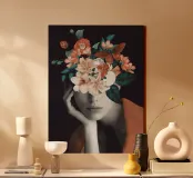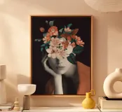 DONNA CON FIORI 7 tela con Cornice a cassetta