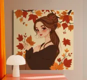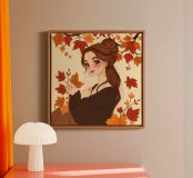 donna con foglie d'autunno in un'illustrazione dai toni caldi tela con Cornice a cassetta