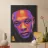 Primo piano del volto intenso di un uomo, luminoso nei toni del blu e dell'arancio, con la scritta "DR. DRE"
