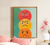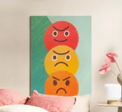 Illustrazione allegra con varie espressioni di facce arrabbiate con disegni unici, che irradiano uno spirito di onestà e coraggio nell'esprimere le emozioni.