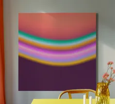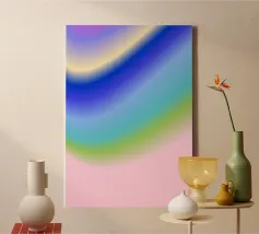Due forme dai contorni fusi si fronteggiano, come se levitassero. I loro colori cangianti ondeggiano su uno sfondo color lavanda, creando un effetto calmo e ipnotico. L'immagine evoca un dialogo silenzioso tra due entità astratte, vicine ma separate, in uno spazio fluttuante.