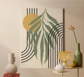 forme astratte foglie linee geometriche linee ad arco giallo c tela