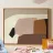 Un insieme di forme geometriche sovrapposte crea un disegno minimalista e astratto. I toni neutri del marrone, del beige e del nero dominano l'immagine, offrendo una composizione calma ed equilibrata.