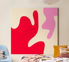 Elevate il vostro spazio con un'accattivante opera d'arte moderna caratterizzata da forme astratte in vivaci tonalità rosse, rosa e viola. Aggiungete un tocco di raffinatezza e vivacità al vostro arredamento con questo splendido pezzo. Perfetto per gli appassionati d'arte che cercano un'eleganza contemporanea.