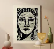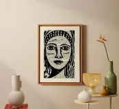Ritratto di donna in linoleografia, stampato a mano su carta antica del 1850. Ispirata all'estetica della calligrafia d'epoca, questa creazione fonde tradizione e modernità, abbracciando delicatamente i tratti femminili. Un'opera d'arte singolare, che unisce l'eredità del passato a un look contemporaneo, ideale per un ambiente unico e artistico.