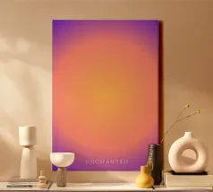 Potente, luminoso, atmosferico: questo motivo glow combina i toni caldi dell'arancione con il rosa intenso e il viola per creare un centro di colore luminoso. Come un centro luminoso, irradia energia, calore e calma allo stesso tempo. Perfetto per ambienti espressivi, studi creativi o come pezzo forte. Fa parte della collezione "Glow Forms", una serie in cui i colori diventano tangibili.