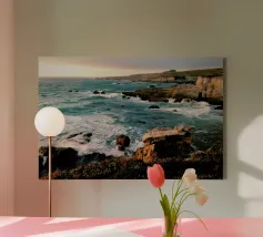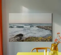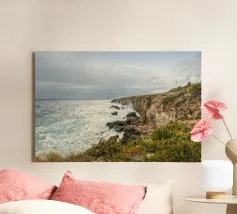 Questa splendida fotografia cattura un sereno paesaggio costiero. Perfetta per gli appassionati di natura e per coloro che apprezzano la tranquilla bellezza degli ambienti costieri, questa immagine conferisce un senso di pace e di splendore naturale a qualsiasi spazio.