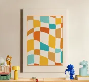 Con questa stampa d'arte astratta, che conferisce al vostro spazio un'atmosfera divertente e vintage, il disegno è caratterizzato da un dinamico motivo a scacchiera ondulato con bordi curvi, che crea un effetto ottico ipnotico. Il disegno presenta un dinamico motivo a scacchiera ondulata con bordi curvi, che crea un effetto ottico ipnotico. La tavolozza calda e vibrante comprende il giallo solare, l'arancione terracotta, l'azzurro e il bianco crema, il tutto sovrapposto a una sottile texture consumata per un'autentica estetica anni Settanta. Questo pezzo è perfetto per aggiungere un tocco di massimalismo retrò o di fascino bohémien a qualsiasi stanza. Disponibile come file di arte digitale di qualità superiore (7000x5000 pixel, 300 dpi), garantisce un'eccezionale fedeltà dei colori e un'ottima resa.