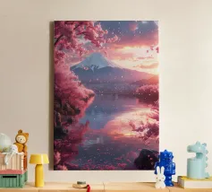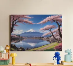 Il Monte Fuji in Giappone con i ciliegi in fiore tela