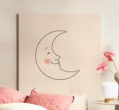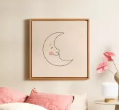 Illustrazione di luna felice con un volto sorridente su una luce arte tela con Cornice a cassetta