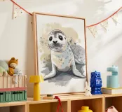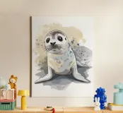 Illustrazione di una simpatica foca in posa giocosa tela con Cornice a cassetta
