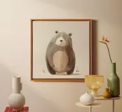 Illustrazione stilizzata ad acquerello di un orso bruno tela con Cornice a cassetta