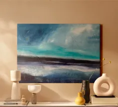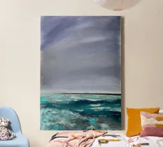 This abstract seascape captures the movement, depth and atmosphere of the ocean in a modern, timeless form. Flowing structures and nuanced colours are reminiscent of water, wind and light in transition and convey tranquillity, vastness, longing and freedom. The minimalist seascape creates a meditative mood and blends harmoniously into modern living spaces, Scandinavian interiors or minimalist furnishings. Ideal for anyone who loves abstract art, maritime motifs and timeless wall art.