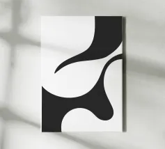 Forme di linee organiche nere e irregolari che si intersecano. Astratto iper-minimalista in bianco e nero di due semplici linee curve, una più spessa e una più sottile, che si intersecano e creano una forma calma ma anche dinamica.
