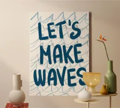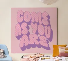 Design giocoso con foglie rosa su sfondo lilla e citazione scritta a mano "va e viene in onde - lo fa sempre" in un tenue color crema. Per tutti coloro che vogliono portare un po' di leggerezza e colore nella vita di tutti i giorni.